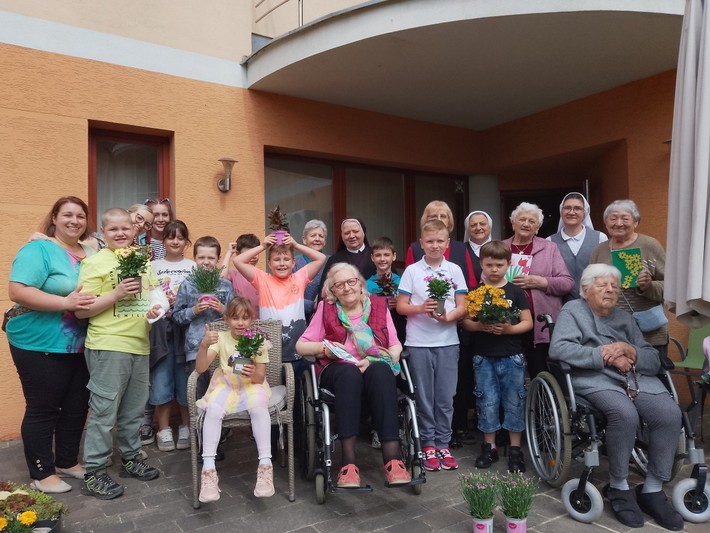 Dňa 17. 6. 2025 nás v Dome sv. Jozefa navštívili deti zo Základnej školy na Bernolákovej ulici v rámci medzi-generačného projektu ,,Láska kvitne v každom veku“. Deti prijímateľom zaspievali, zarecitovali a povedali aj pár srdečných slov, ktoré rozjasnili ich tváre. Okrem vystúpenia prijímateľov obdarovali živými kvetmi a vlastnoručne vyrobenými darčekmi, ktorými vytvorili atmosféru láskavosti a vzájomného porozumenia. Deti boli nesmierne milé, srdečné a pristupovali k našim prijímateľom s prirodzenou empatiou. Po vystúpení sme si spoločne vychutnali malé občerstvenie a vzájomne sme sa pohostili.