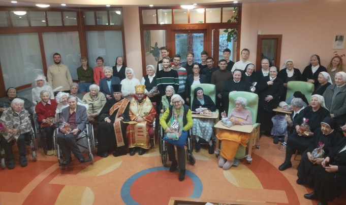 V piatok 6. decembra 2024 sme sa v našom zariadení – v Dome sv. Jozefa všetci spoločne stretli vo vestibule, aby sme očakávali príchod sv. Mikuláša. Ten k nám zavítal spolu so svojimi pomocníkmi, ktorými boli bohoslovci z Gréckokatolíckeho kňazského seminára v Prešove. Privítali sme ich spoločným spevom predvianočných piesní, ktoré si nachystali prijímateľky. Následne sv. Mikuláš každú z nich obdaroval balíčkom sladkostí. V závere nám sv. Mikuláš spoločne s pomocníkmi zaspieval dojímavé piesne (chorály) východného obradu. Pri odchode sv. Mikuláša sme si spravili spoločnú fotku a vzájomne si popriali krásne a požehnané Vianoce.![]()