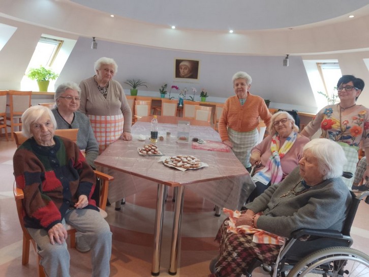 Prípravy na našu „Radostnú rozlúčku s Obdobím cez rok“ sa začali už deň vopred, keď sme spolu s prijímateľkami napiekli tradičné fašiangové domáce šišky. Na druhý deň sme spoločnými silami pripravili aulu a nachystali sladké pohostenie. Hlavným bodom programu boli zábavné športové hry, ktoré do auly priniesli vlnu smiechu a dobrej nálady.